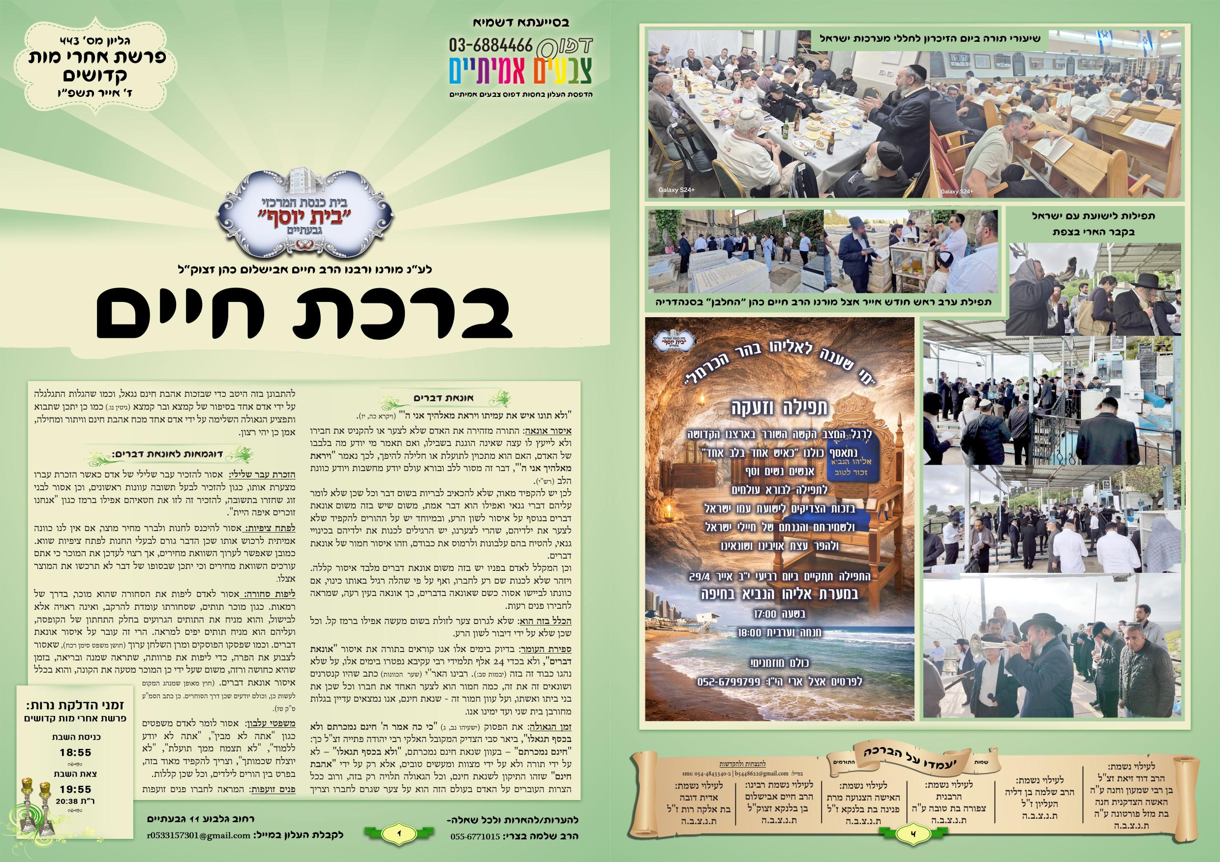 שחרית שבת מניין א' …. 6:30